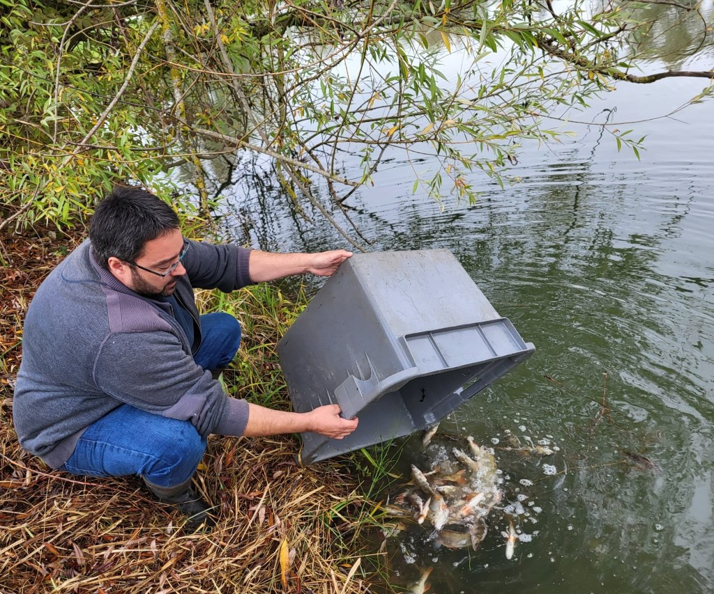 100 Kg de gardons supplémentaires ont été déversés pour le compte de la fédération sur l’étang Polisset à Chatillon-Coligny.