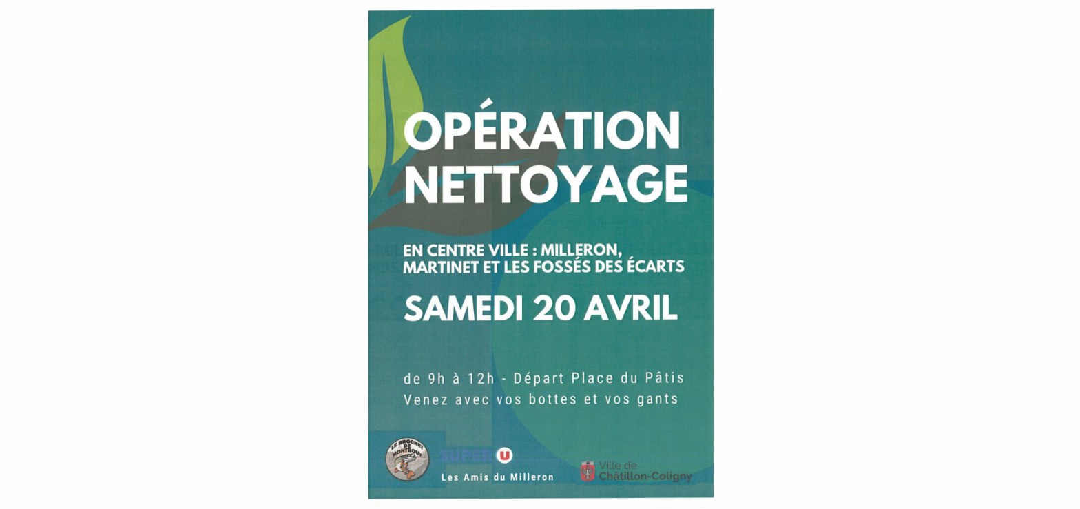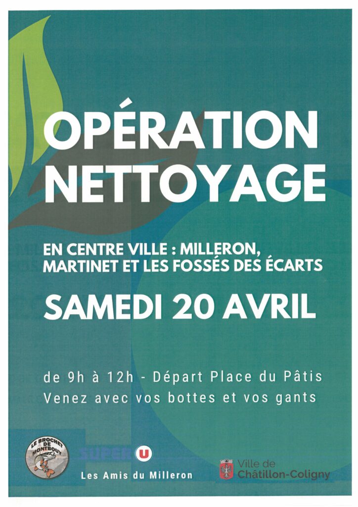 La municipalité de Chatillon-Coligny en collaboration avec l’association « Les Amis du Milleron » et l’A.A.P.P.M.A. Le Brochet de Montbouy organise un grand nettoyage du Milleron en centre ville.