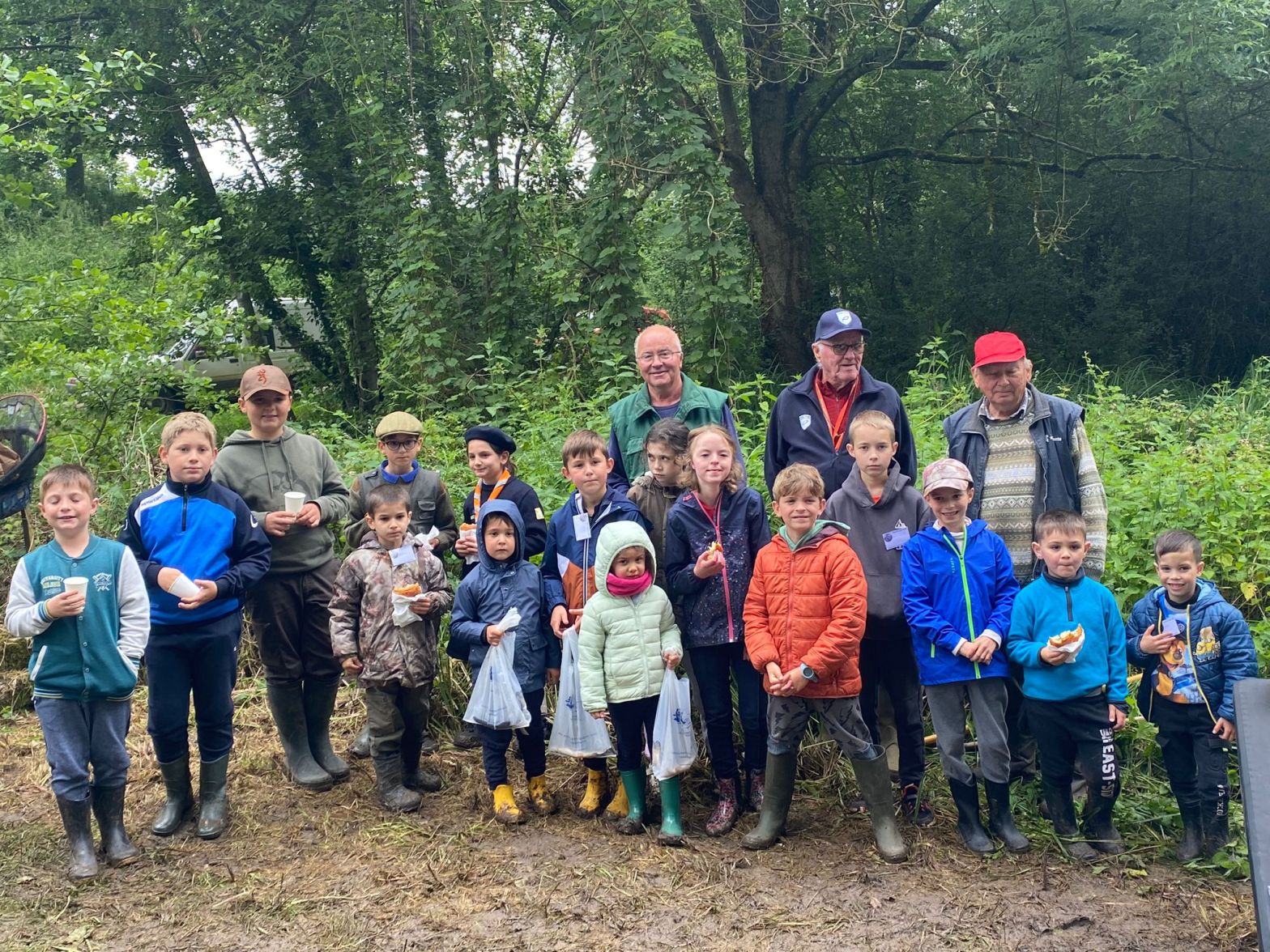 Malgré un temps incertain et un lieu un peu boueux, seize enfants ont participé à cette manifestation et la première fille est Léa avec trois truites pêchées et le premier garçon, Hugo avec également trois truites.