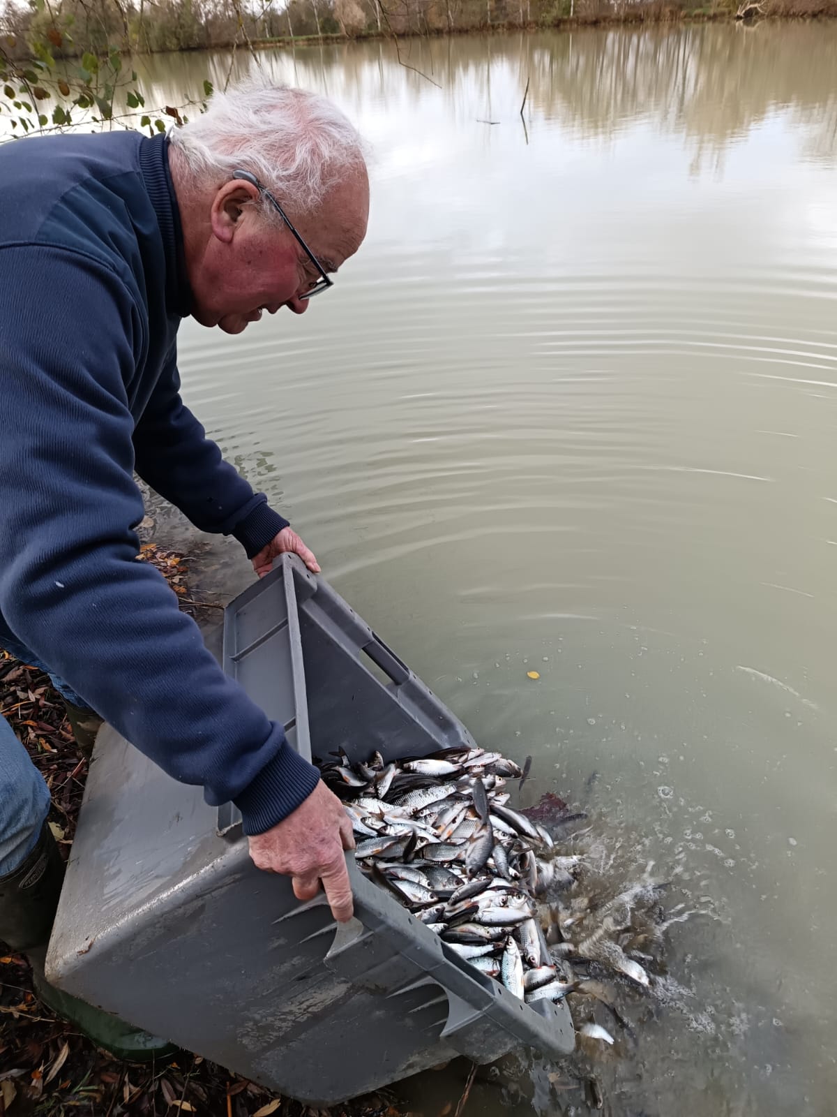 Autour des étangs et du canal, les bénévoles ont prêté main forte aux pisciculteurs agréés. Les bassines remplis de poissons ont été délicatement déversées, laissant s’échapper les gardons, carpes, perches et brochets dans leur nouvel habitat.